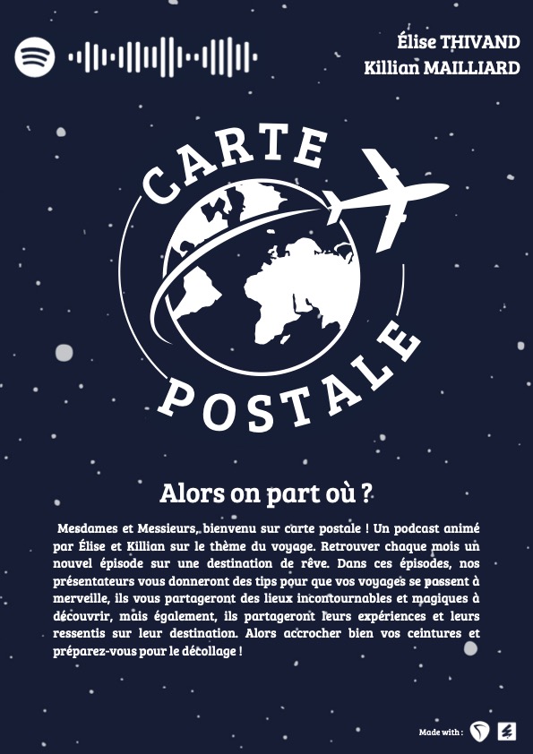 Bienvenue dans Carte Postale, un podcast sur le thème du voyage animé par Élise et Killian. Dans ces épisodes, vous retrouverez des retours d’expériences, des tips pour le voyage et des activités à faire. Alors, on part où ?